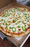 Topped with BBQ sauce, mozzarella, and chicken meat.